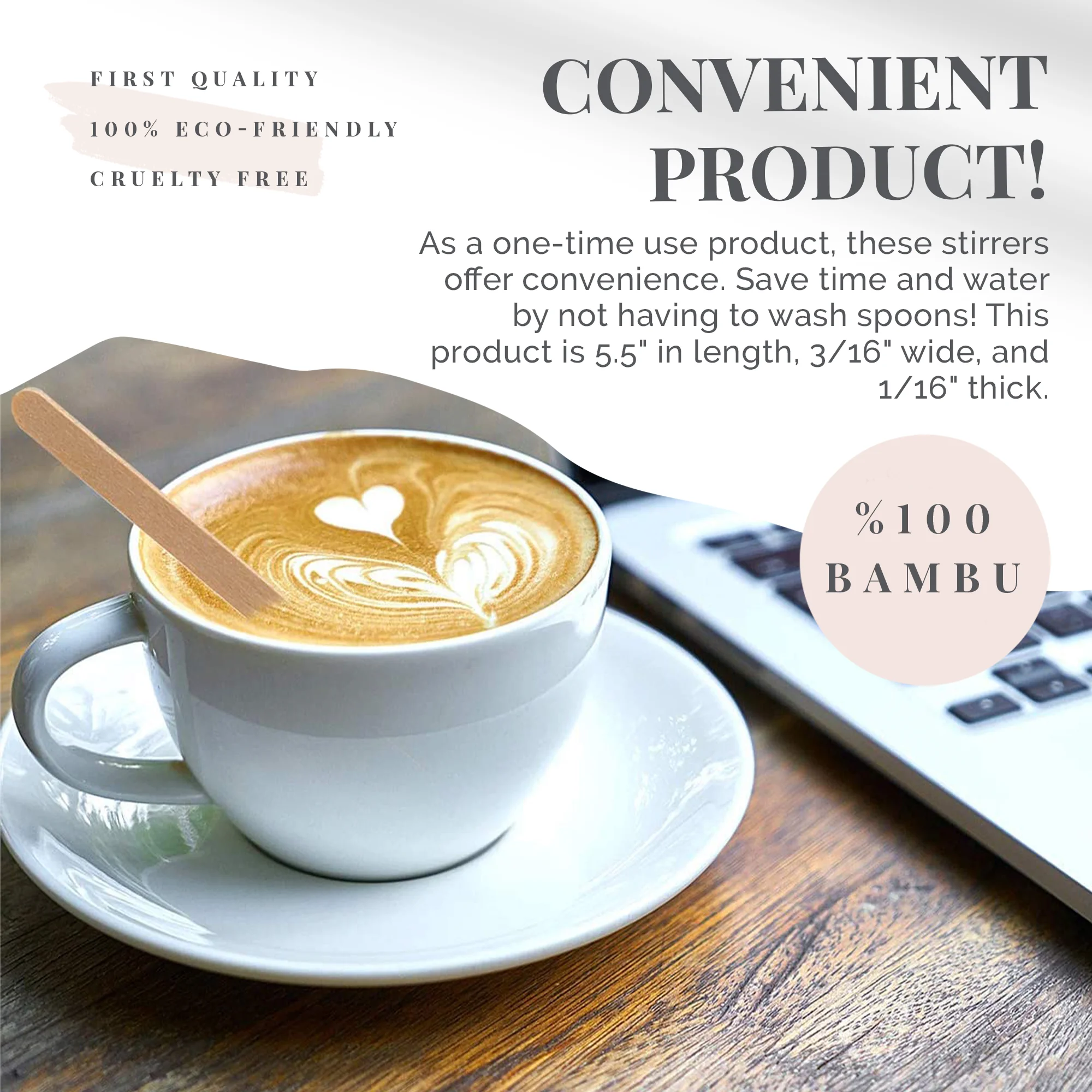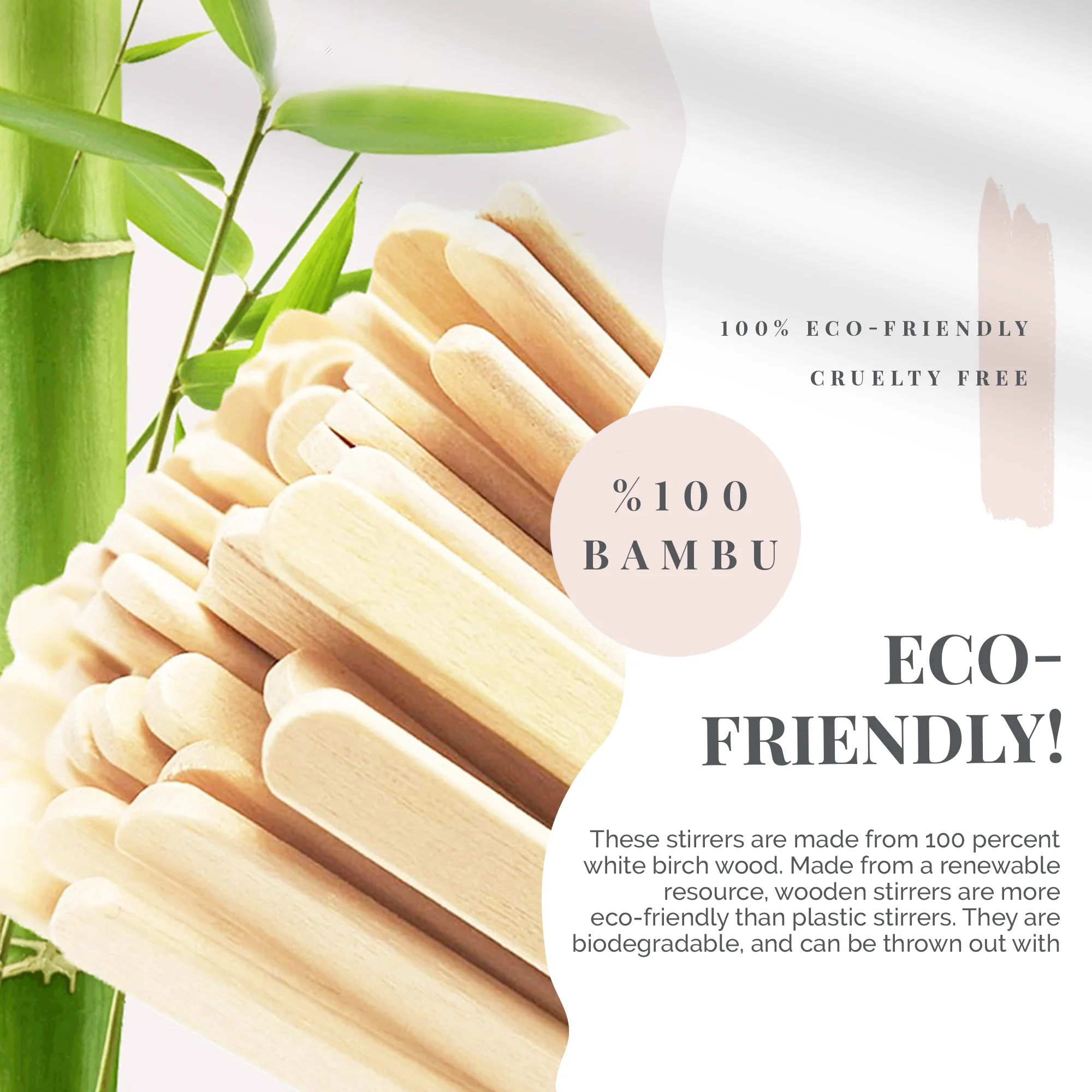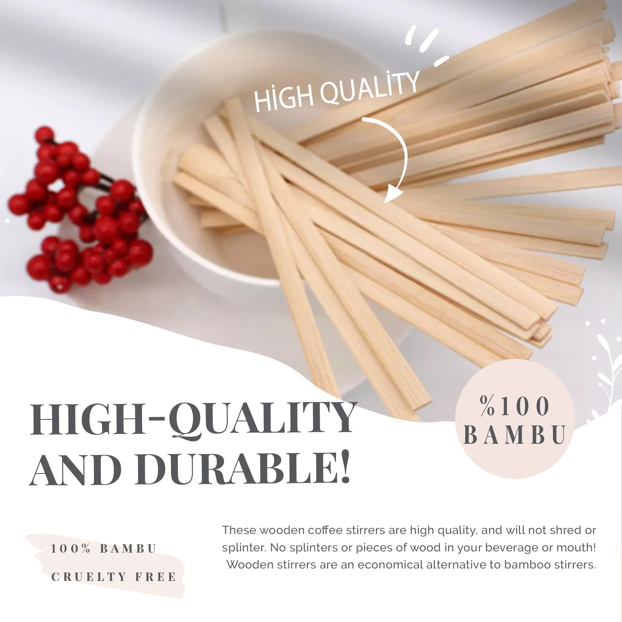 Изготовлено из экологически чистой древесины, биоразлагаемой, нетоксичной, Гладкой отделки и круглых концов, чтобы вы могли лучше размешать свой напиток без пролива.