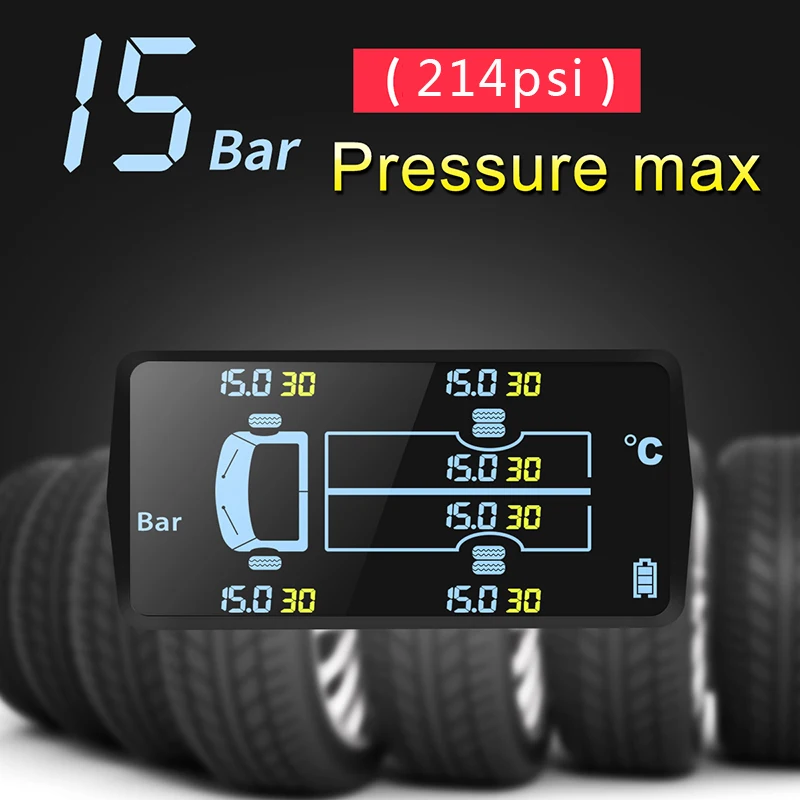 Автомобильный беспроводной монитор давления в шинах 6 внешних датчиков TPMS 15bar система температурной сигнализации LCD USB Solar 6 колесный грузовик