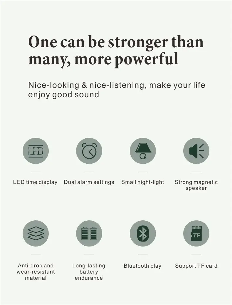 【Bluetooth 5,0 вы можете подключиться к смартфону или планшету сразу же с самых дальних 10 м/32,80 футов. Bluetooth 5,0 динамик Будильник Bluetooth Ссылка и функция воспроизведения tf-карты обеспечивают вам больше выбора музыки.