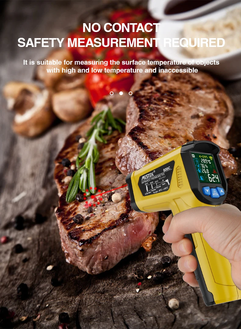 1. Бесконтактный промышленный термометр с 12 точками температуры 2. Сигнал тревоги разности температур, максимальное и минимальное значение можно установить 3.800B.800C с контактным зондом, может точно измерять температуру жидкости 4. Другие функции: температура плесени, температура точки росы (только для 800C)