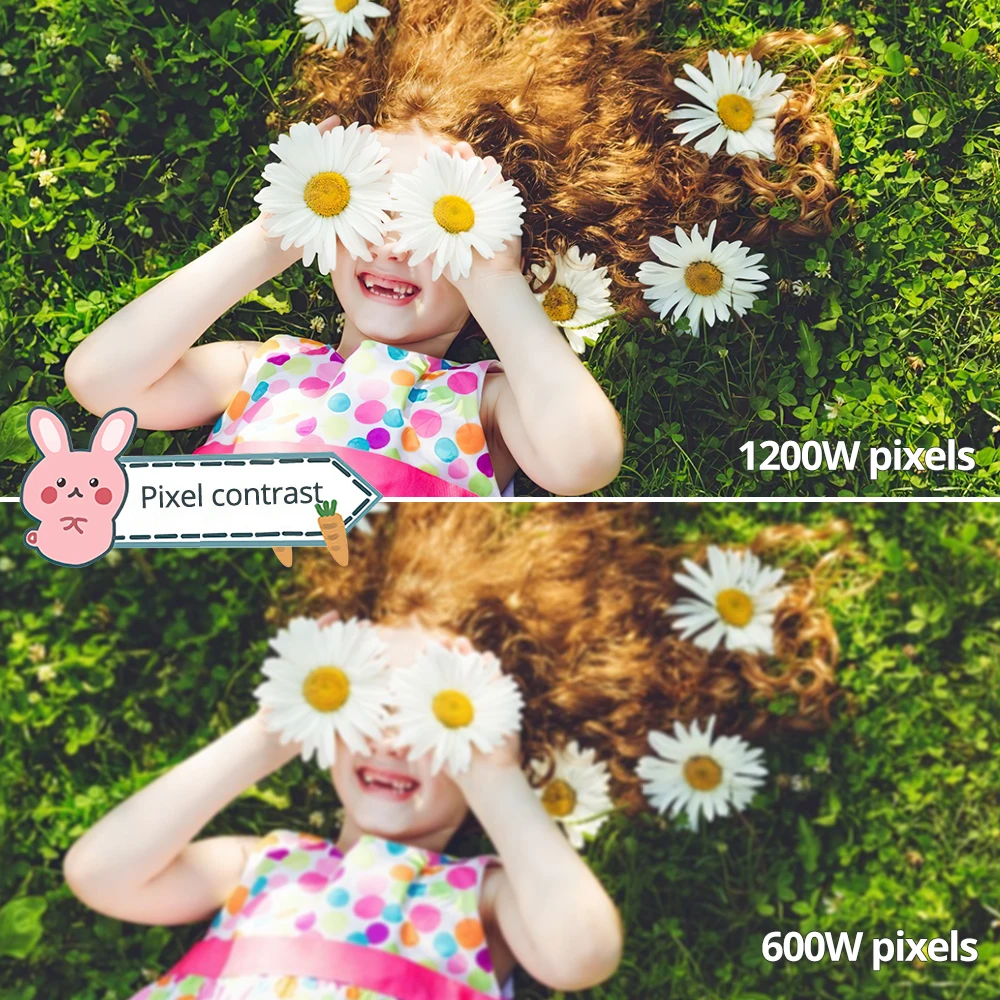 1. Ультра мини-размер, подходит для детских маленьких рук, очаровательные мультфильмы и яркий цветной дизайн, это продуманный подарок для детей, это волшебная камера, которая раскрывает интеллект, чтобы культивировать детские наблюдения и открыть для себя красоту.
