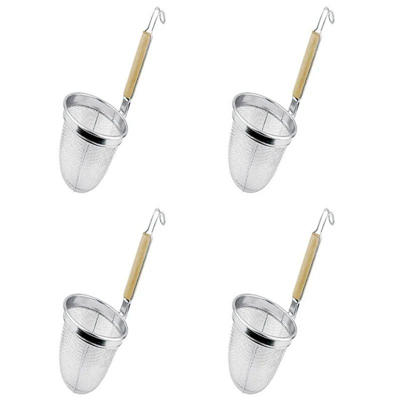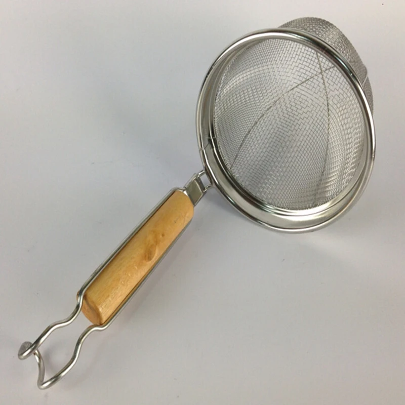 Изготовлен из сетки из нержавеющей стали с прочной проволочной рамой; Деревянная ручка с 2 крючками удобно висит на горшке во время использования и легко хранит