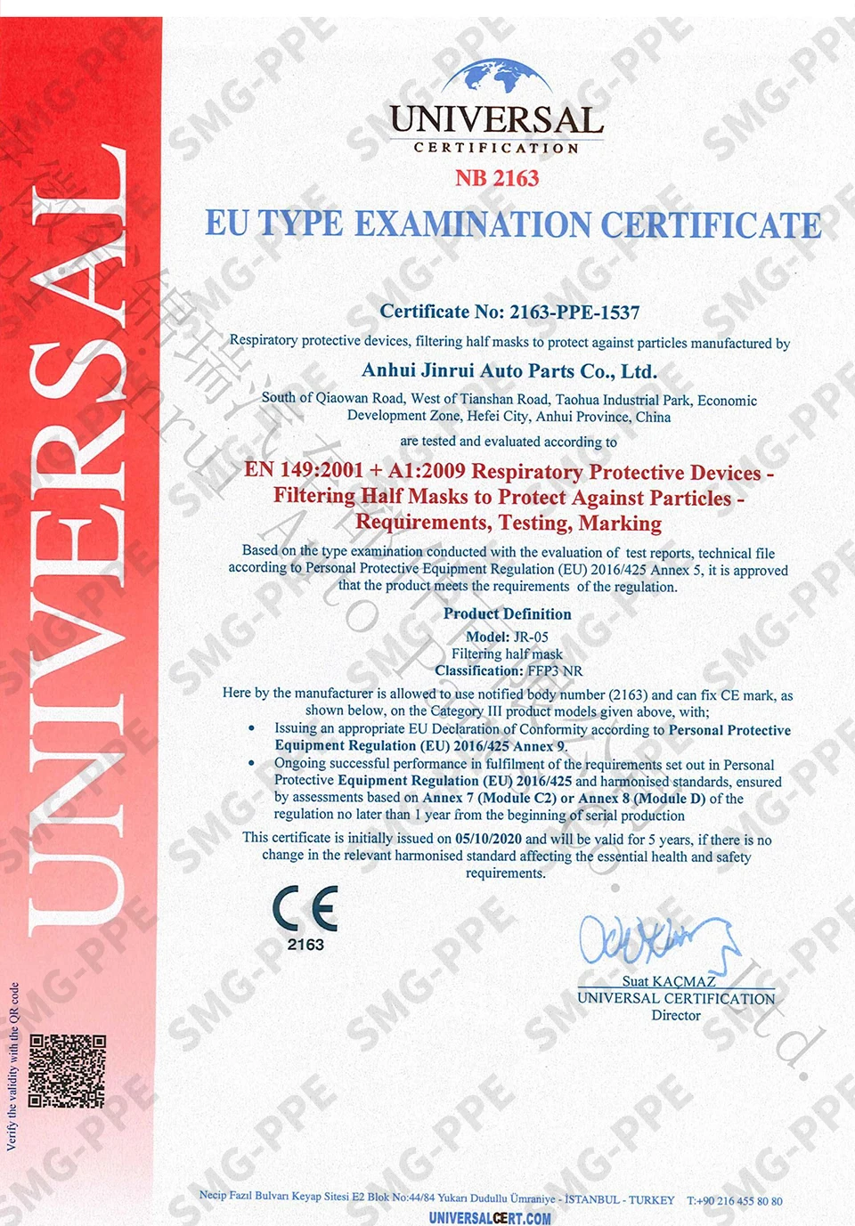 Внимание: маска сCE, FFP3 NRНапечатано на маске и коробке;