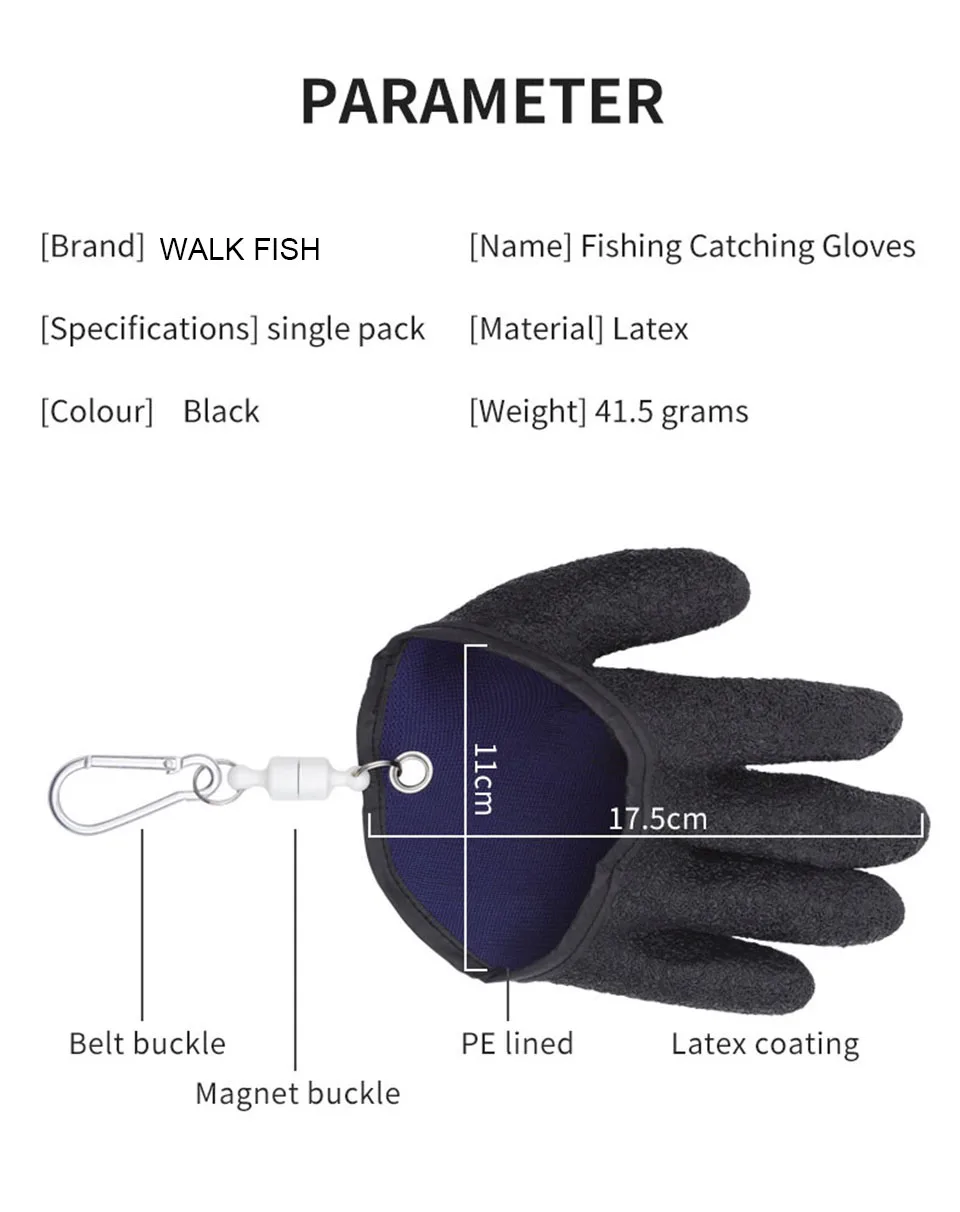 1 шт. Нескользящие латексные рыболовные перчатки loognil, перчатки на открытом воздухе с магнитом, латексная ручная защита от проколов, Рыболовный инструмент