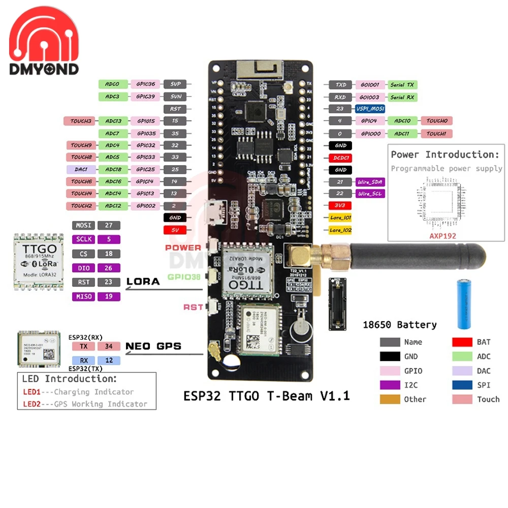 T-Beamv ESP32 чип Bluetooth WiFi Беспроводной модуль LoRa GPS NEO-6M SMA с OLED Экран макетная плата 433/868/915/923 МГц