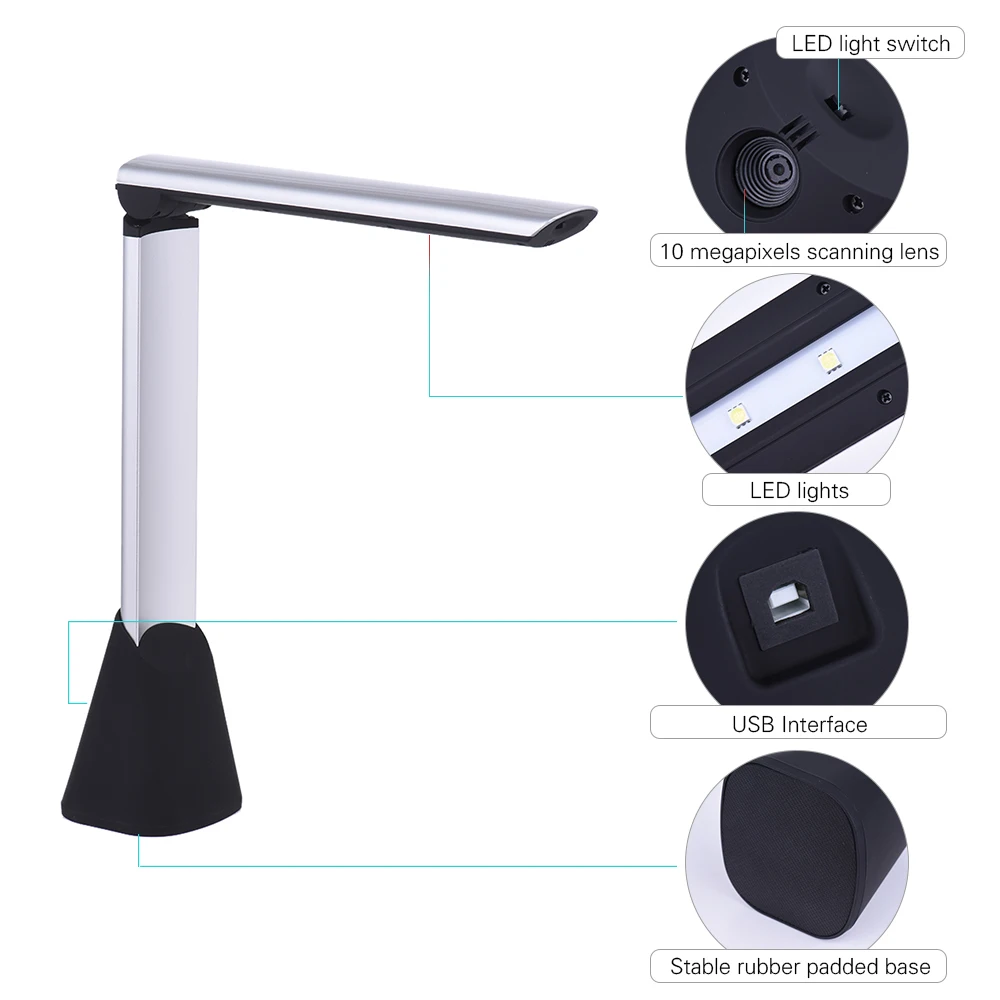 Этот портативный сканер документов специально разработан для использования в офисах, классах, библиотеках, банках, больницах и т. д. С одним HD датчиком изображения (10 мегапикселей), он может достичь высокой скорости (около 1 секунды) в режиме реального времени сканирования. С накладным CMOS сенсором и Максом. Размер сканирования до A4, который увеличивает типы документов или объектов, которые могут быть отсканированы, такие как документы, которые имеют различные размеры и формы или в папках, и предметы, такие как книги, журналы, удостоверение личности, паспорт и т. Д. Он также поддерживает фотосъемку, Создание PDF и другие функции. Благодаря этому ваша работа станет более удобной, более эффективной и экологически приятной.