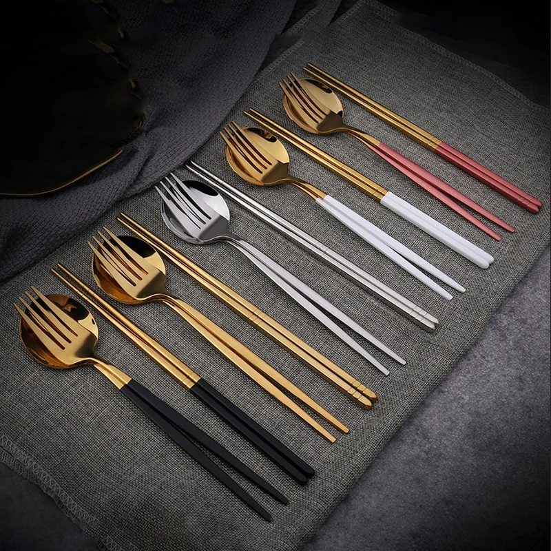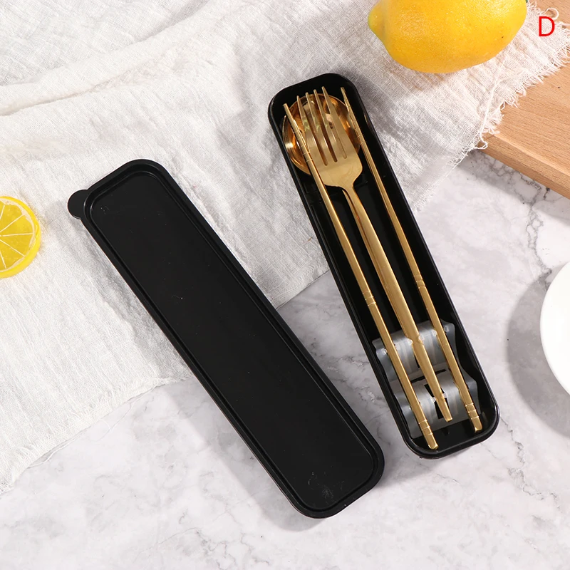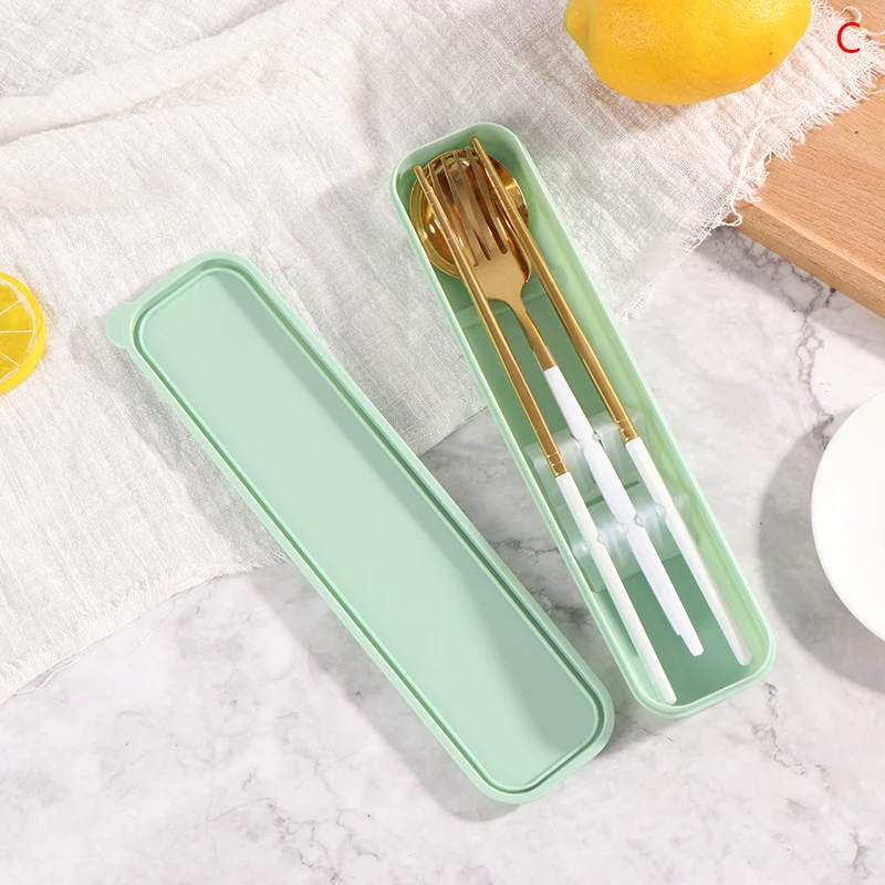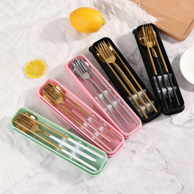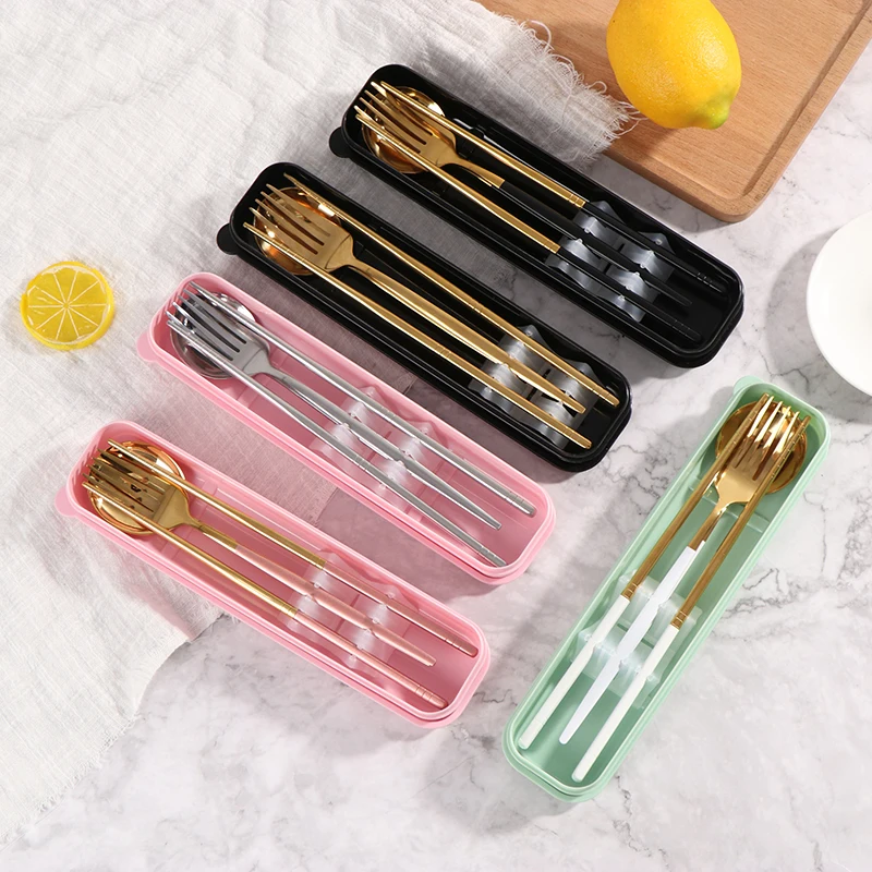 Портативная Милая Ложка Вилка палочки для еды дорожная школьная посуда набор с коробкой для хранения