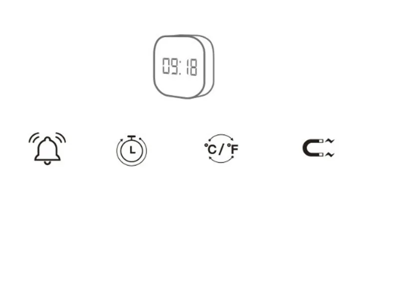 1. Два будильника 2. Таймер 3. Фаренгейт/Цельсия 4. Может быть магнитным/может быть установлен