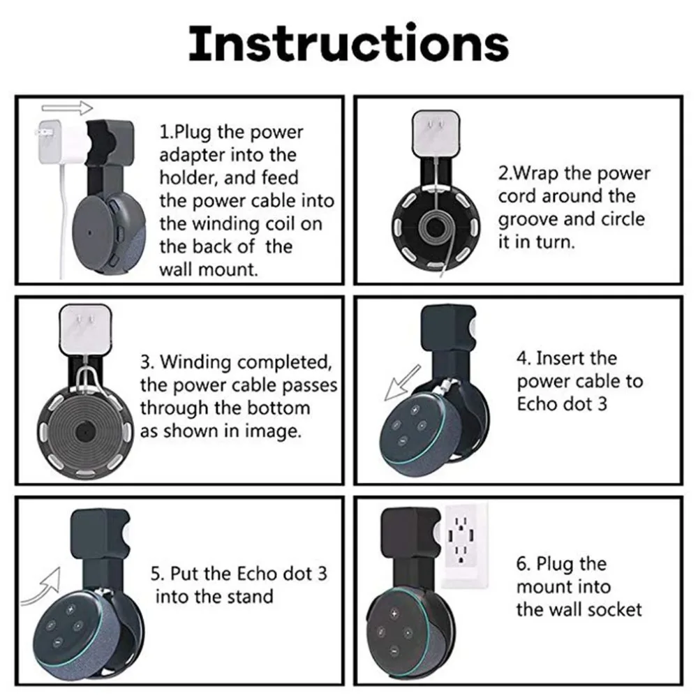 1. Securely hold Dot Gen3 without blocking sound, a small flange in the back improves acoustic quality as it prevents the device from resting directly against the wall.