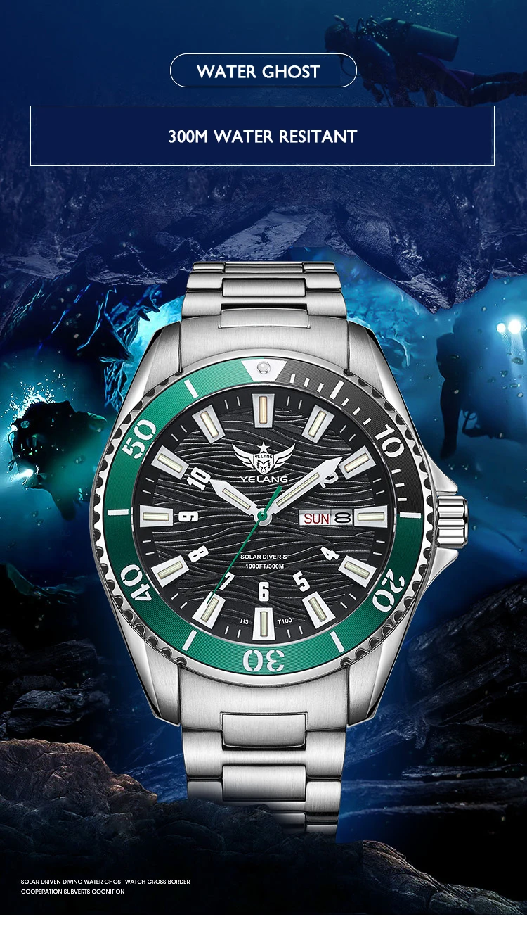 【Функции: H3 часы H3 T100 tritium Профессиональные Водонепроницаемые на 300 м, подходят для любого случая, могут плавать, спортивные, повседневные, военные часы для мужчин с 14 швейцарскими T100 тритийными светящимися трубами, И он может четко видеть в темноте, наручные часы с Seiko Eco-Drive chronographic, точное время.