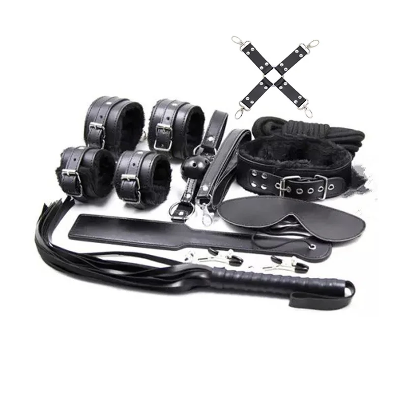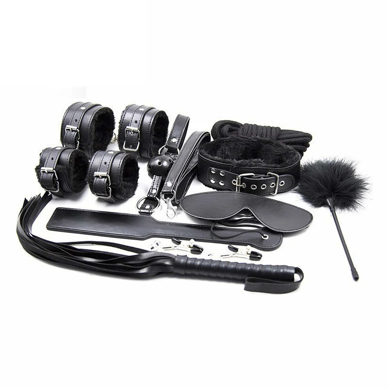 10 шт./компл. секс связывание сдержанность SM комплект наручники Ошейник Кляп маска весло плетение веревка перо взрослые игры секс игрушки для пар
