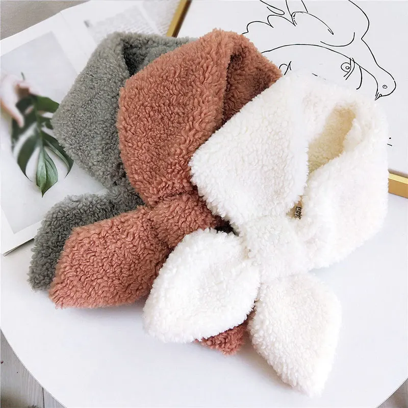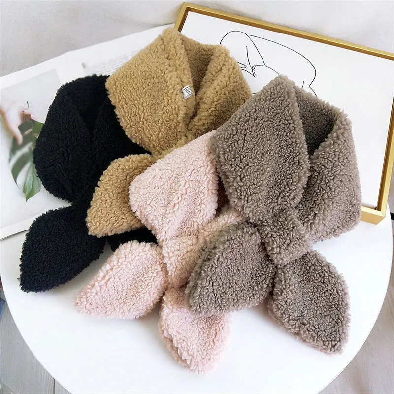Шарфики с острым углом, теплые шарфы для шеи, теплый шарф с воротником, однотонный двусторонний плюшевый шарф, имитация меха ягненка