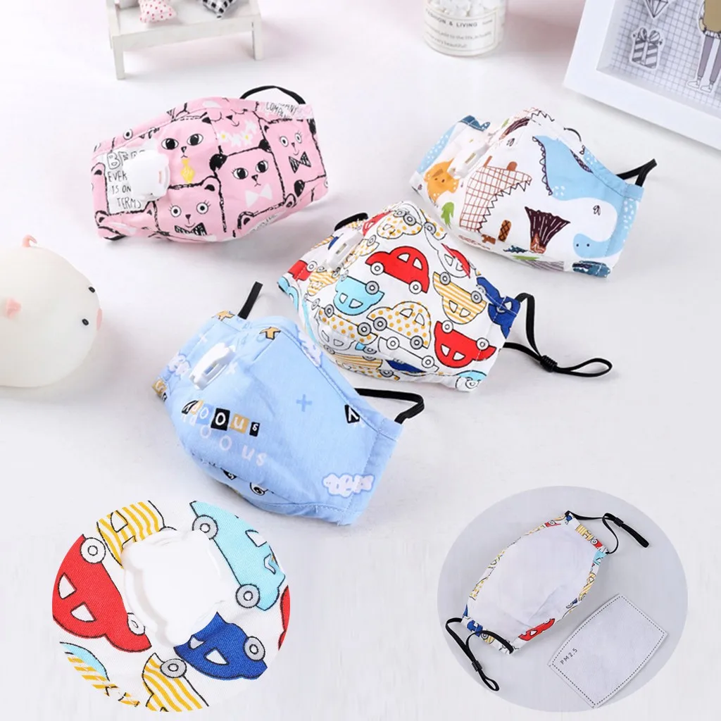 Children Kids Cartoon print Adjustable Safet Filter Breather Valve Cotton Mask