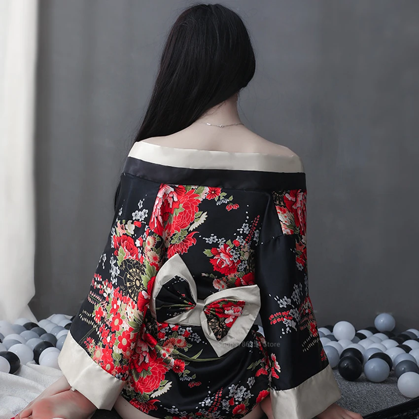 Стиль: сексуальный костюм гейши/короткое платье юката/Кимоно Посылка: кимоно + пояс Повод: для дома, вечерние, косплей