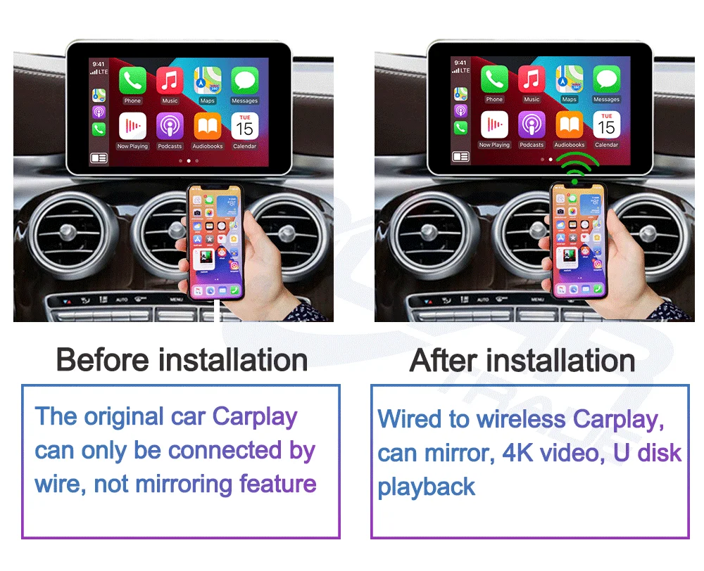 Важно:Пожалуйста, убедитесь, что ваш автомобиль имеет оригинальную проводную Apple Carplay