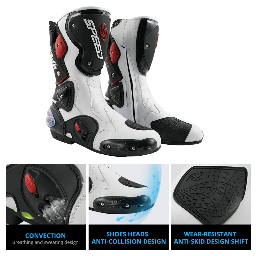 1. Это набор гоночных сапог, как одна из функций транспортного средства. Высококачественная резиновая подошва, специальные материалы для защиты от столкновений, эффективная защита езды.