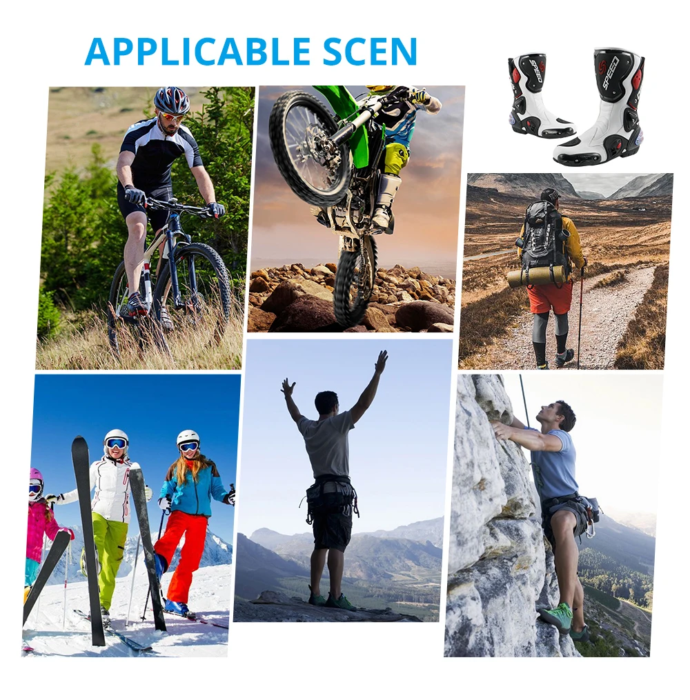 3. Износостойкая Нескользящая конструкция, специальные материалы для устройства предотвращения столкновений, эффективная защита, Новый эластичный кондиционер, легко носить, вентиляция, дизайн гарантирует комфорт езды, волшебная регулировка лодыжки, светоотражающий износ пояса, с высокой светильник со светоотражающей текстурой, легко ездить ночью в дождливый день