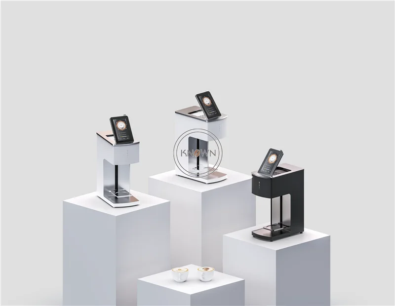 Этот селфи латте искусство съедобные чернила кофе еда торт Шоколадный принтер представляет собой комбинацию 3D печати и струйной технологии кофе цветок машина. Пользователям нужно только положить кофе на цветочную машину, а затем через мобильный телефон загрузить любой желаемый узор, подождите 15 секунд, вы можете получить чашечку кофе с пользовательским узором.