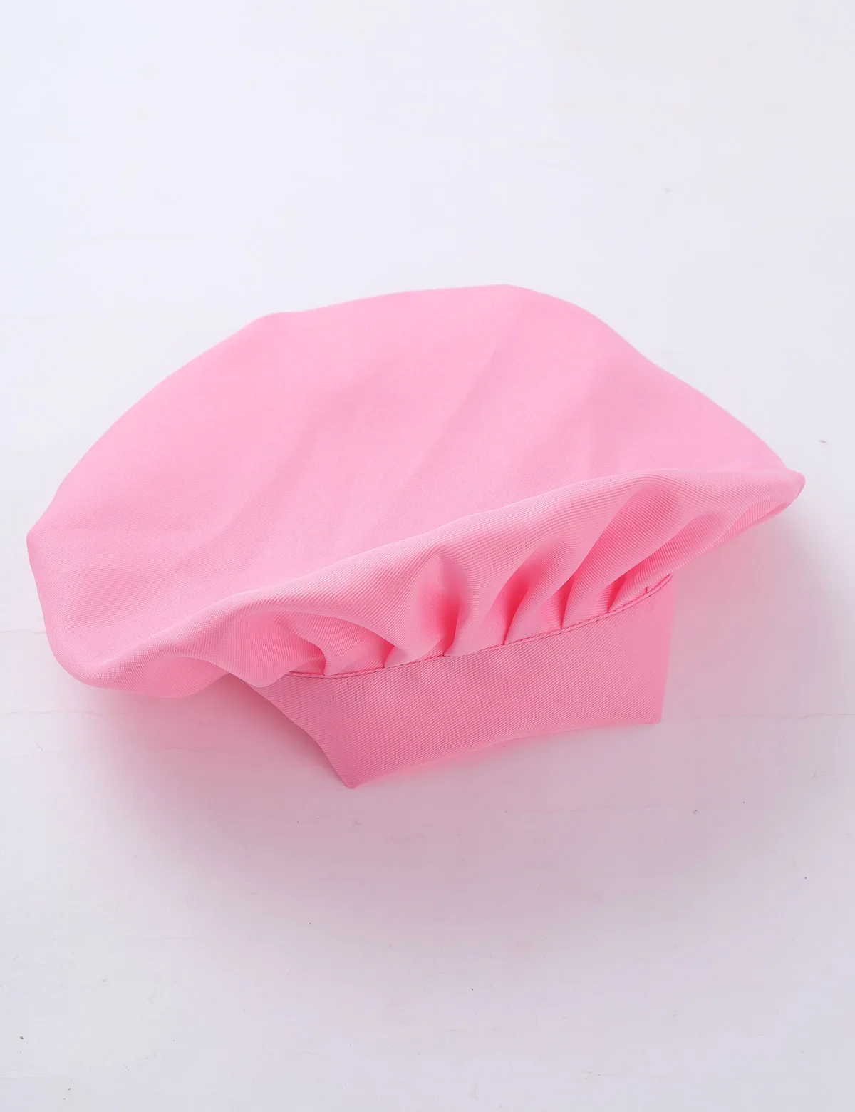 Фартук снабжен регулируемым ремешком на шее и поясными завязками, шляпа шеф-повара в форме гриба с резинкой сзади для лучшей посадки.