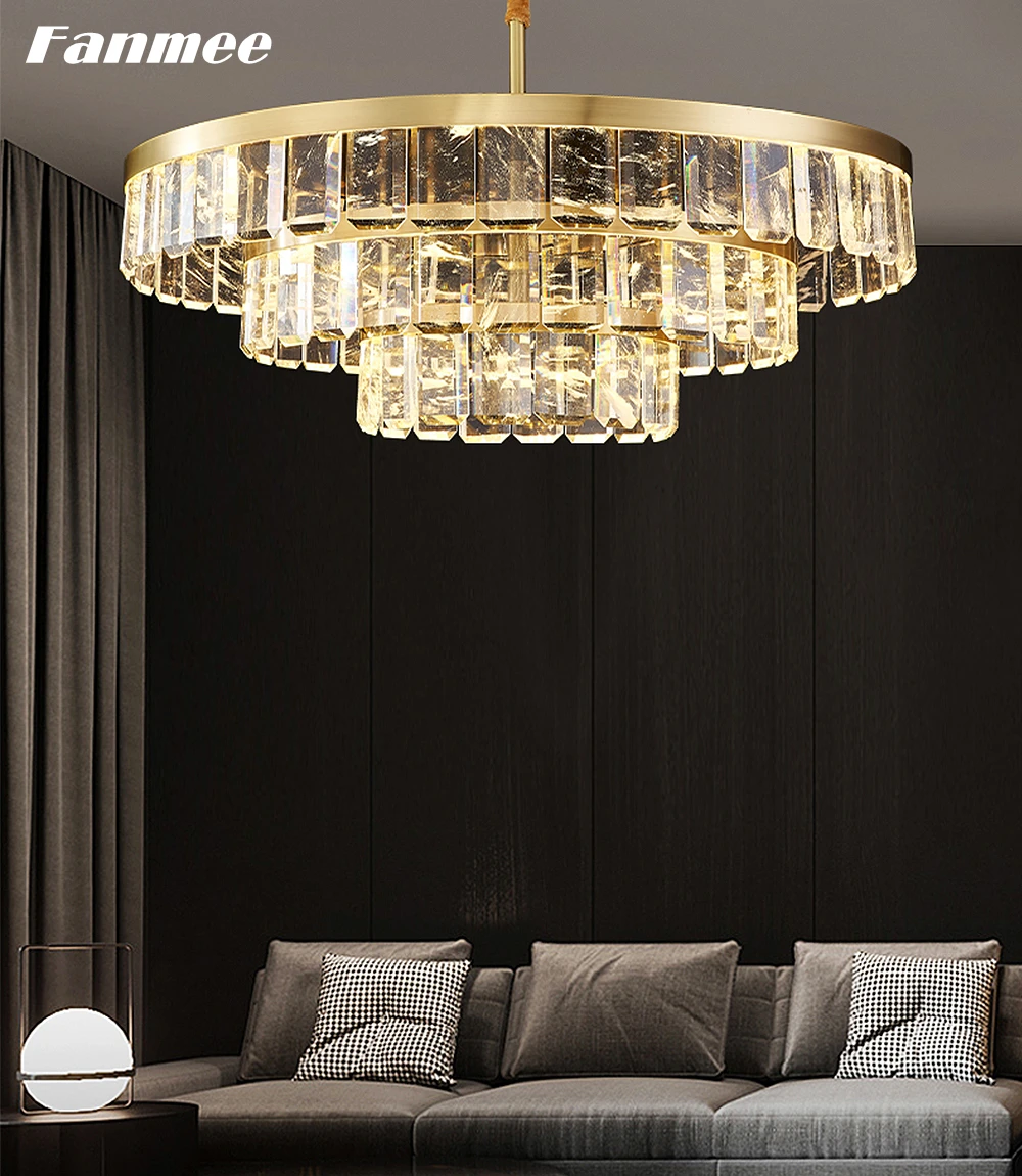 Современный прозрачный кристалл 2 яруса люстра светильник светодиодный роскошный медный круглый подвесной светильник Арт Деко Гостиная Спальня обеденный стол