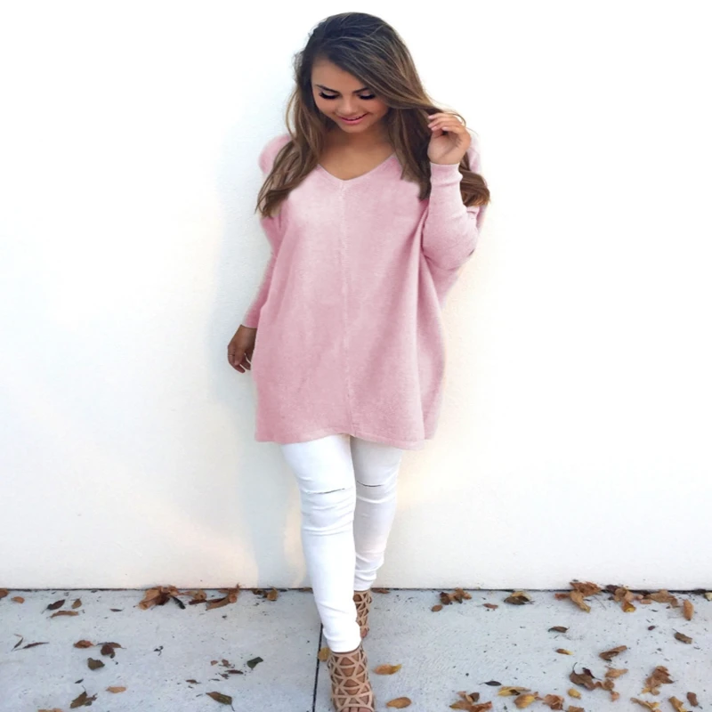Модный женский свитер с v-образным вырезом и длинным рукавом, повседневный Свободный вязаный свитер на осень и зиму, повседневный трикотажный свитер большого размера