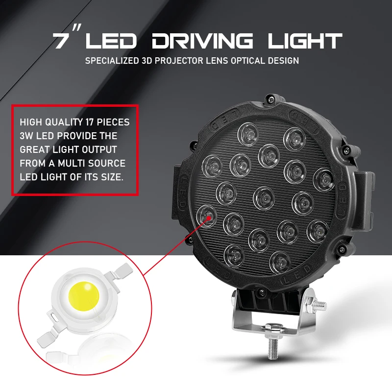 Рабочий светильник, 7 дюймов, 12 В, 24 В, круглый светодиодный светильник жектор для внедорожников, прожектор s, фара для вождения по бездорожью, противотумансветильник фара s для Jeep ATV