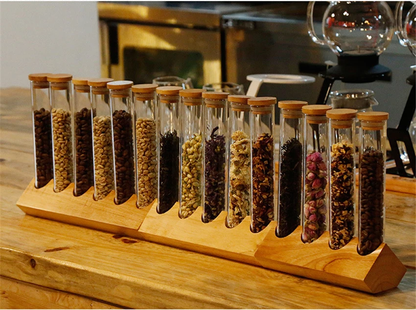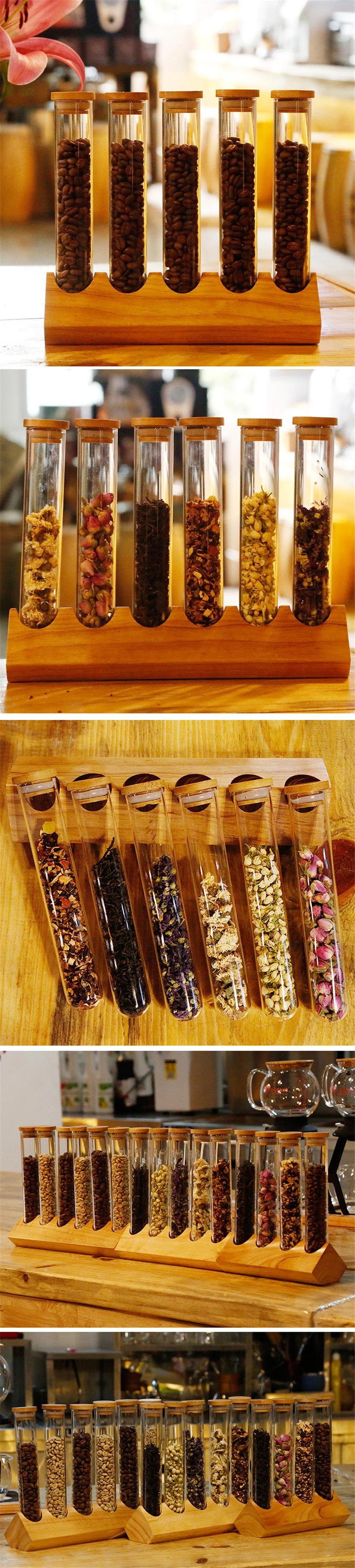 Деревянные кофейные бобы, цветочный чайный стеллаж, подставка для злаков, стеклянная пробирка с пробкой, герметичное хранение, декоративные украшения