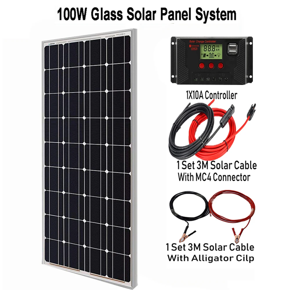 100W Glass Solar Panel System :1*100W Glass Solar Panel, 1*10A Solar Controller ,1 Set 3M Cable With Connectors.