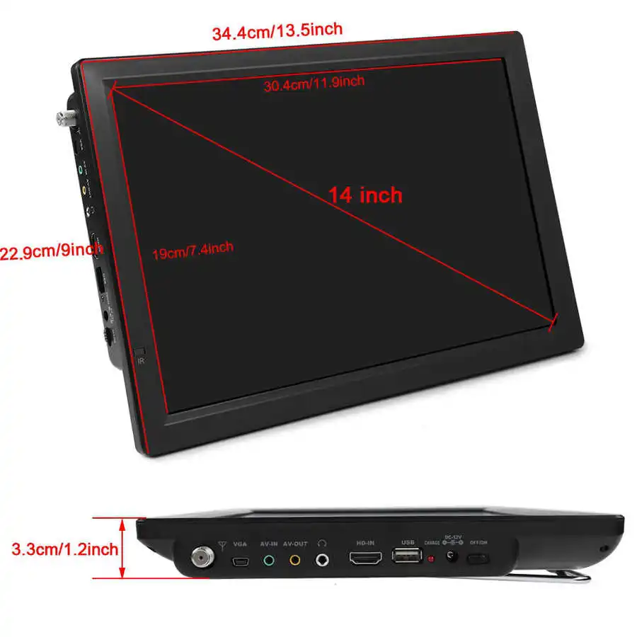 14 "Цифровое телевидение ATSC портативное ТВ 1080P HD видео плеер 110-220 В США для домашнего автомобиля