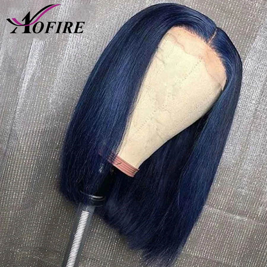 Парики из натуральных волос на кружевной основе темно-синего цвета