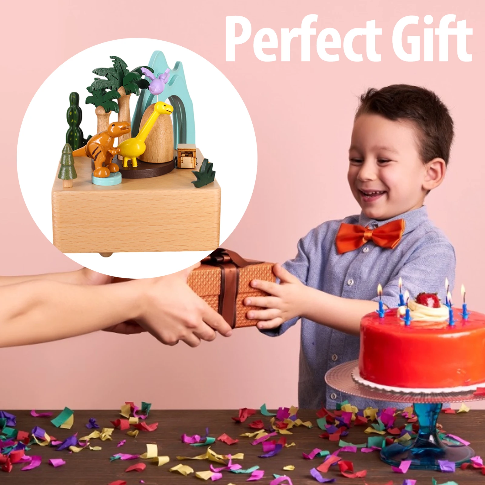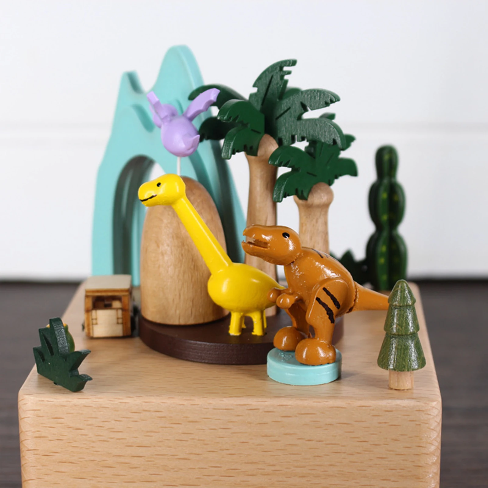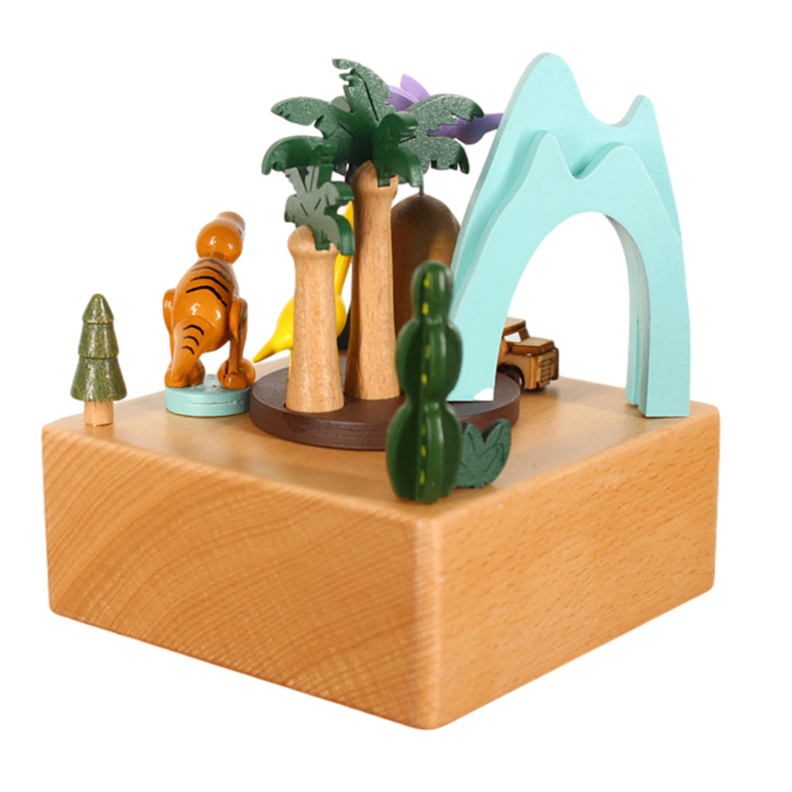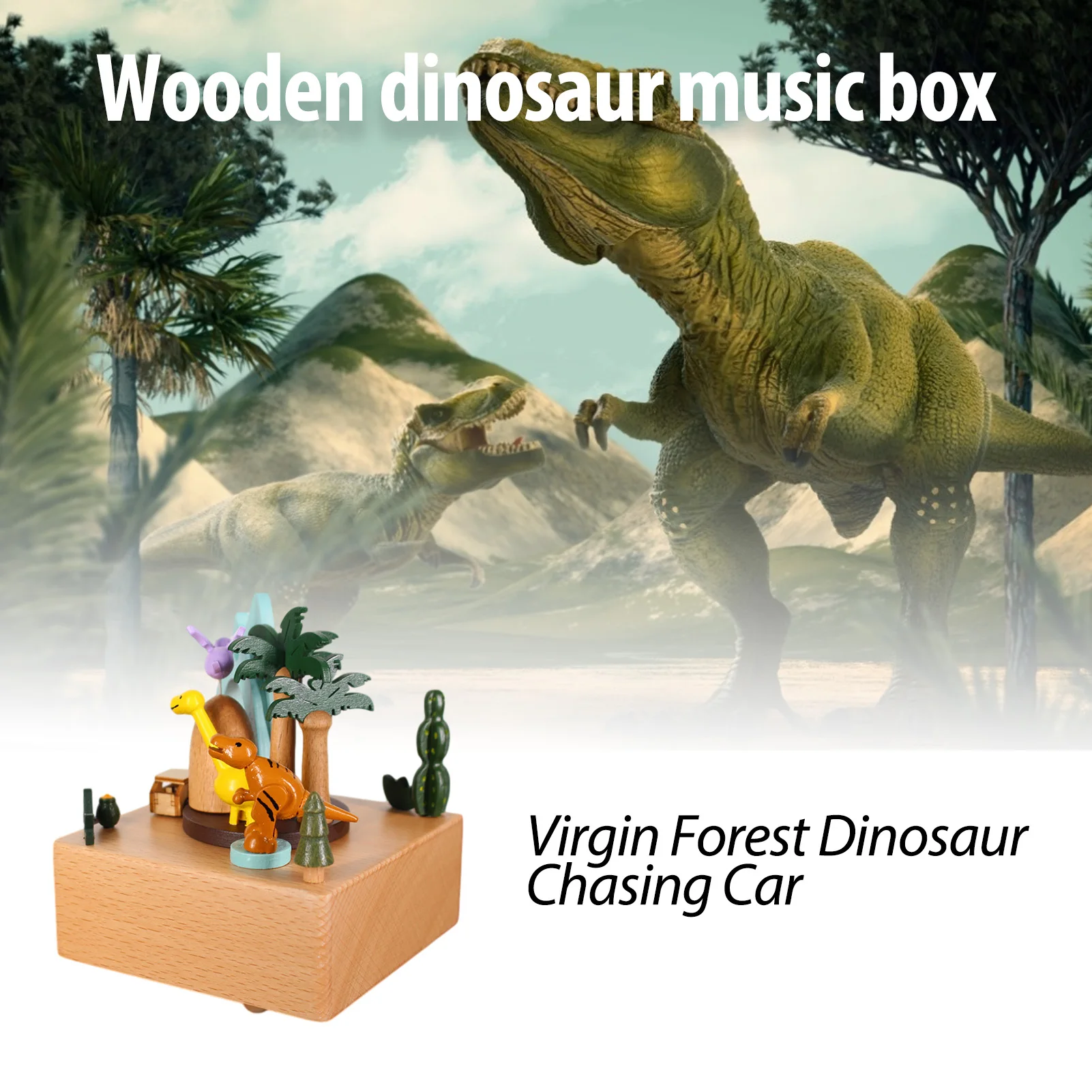 Вращающаяся на 360 градусов деревянная музыкальная шкатулка инновационный девственный лес динозавр погоня за автомобилем домашний декор отличный подарок для вашего ребенка