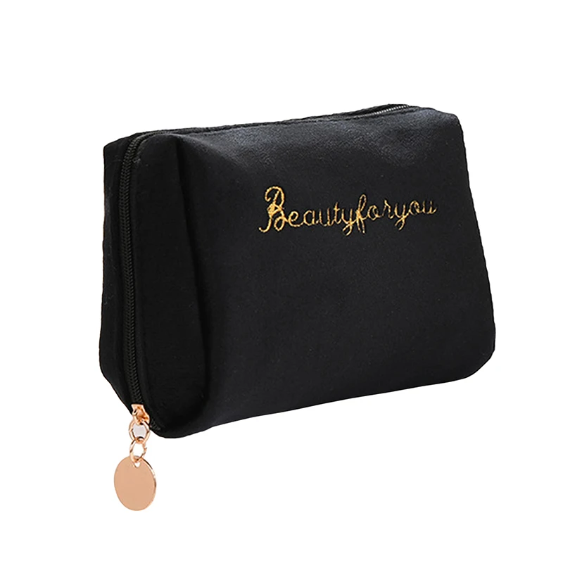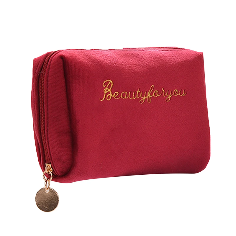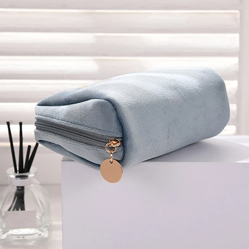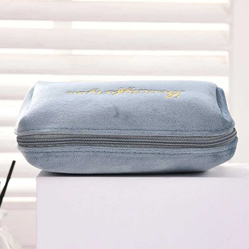 1 шт., Женская бархатная косметичка на молнии, дорожная большая косметичка для макияжа, Однотонный женский косметический мешочек