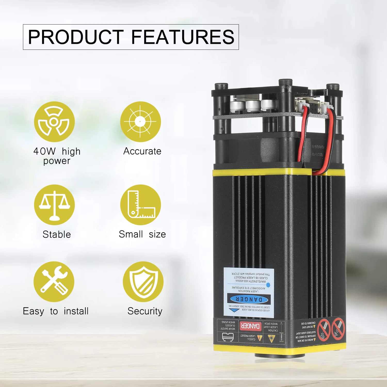 Долголетие и более низкие потери -- Модернизированный 40 Вт лазерный модуль с более высокой скоростью гравировки, точностью и стабильностью между тем обеспечивают более низкую потерю, чтобы продлить срок службы лазерного модуля.