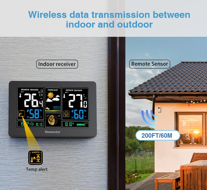 Беспроводная домашняя метеостанция отображает погоду в режиме реального времени с помощью мониторинга температуры в помещении и на улице и влажности.