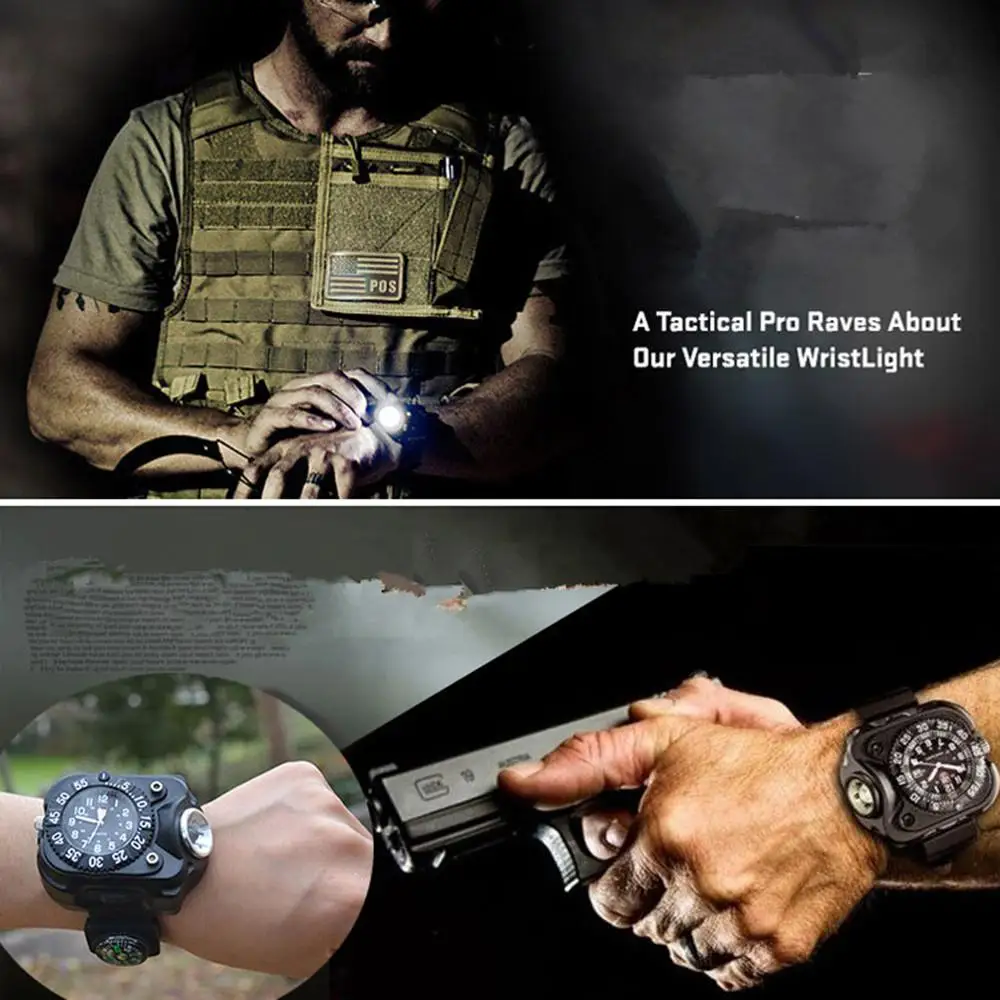 Function: Wrist Watch + LED Flashlight + Compass