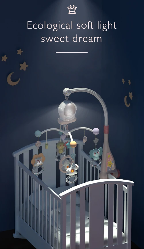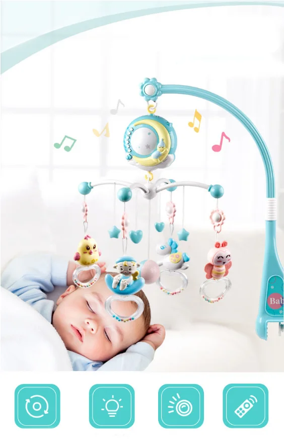 Простота в использовании: Легко собирается и крепится к кроватке. С пультом дистанционного управления, он может управлять всеми функциями музыкальной шкатулки.