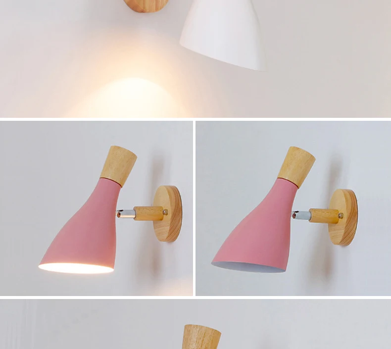 PHYVAL скандинавский настенный светильник креативный настенный светильник Macaron из цельного дерева для спальни прикроватный светильник для гостиной E27 светодиодный настенный светильник