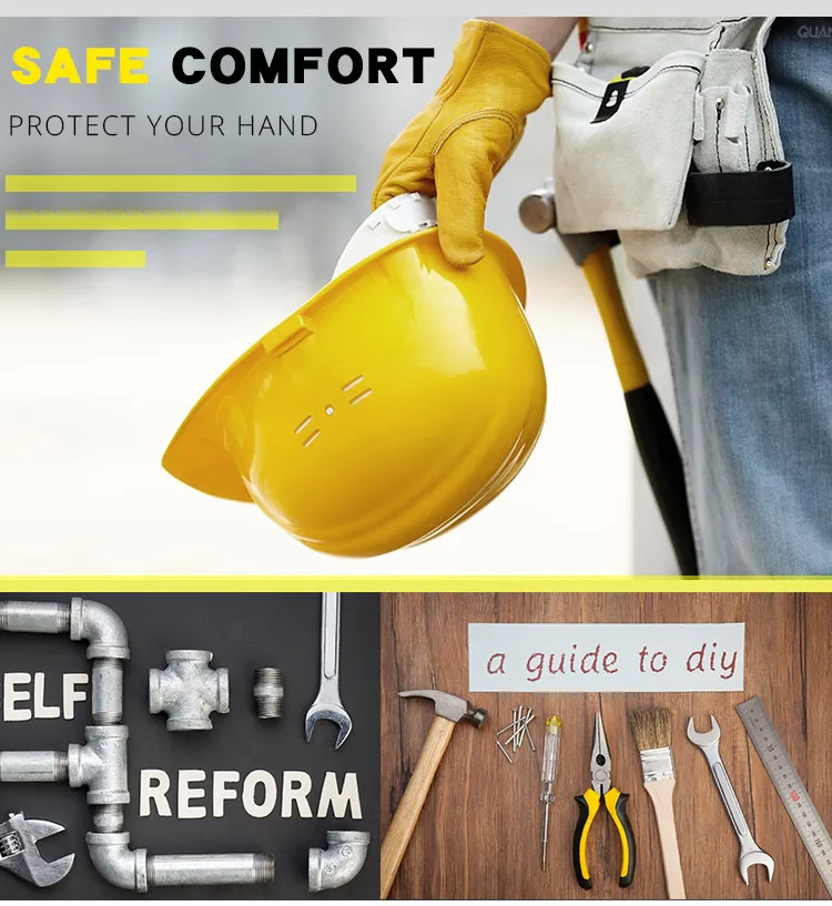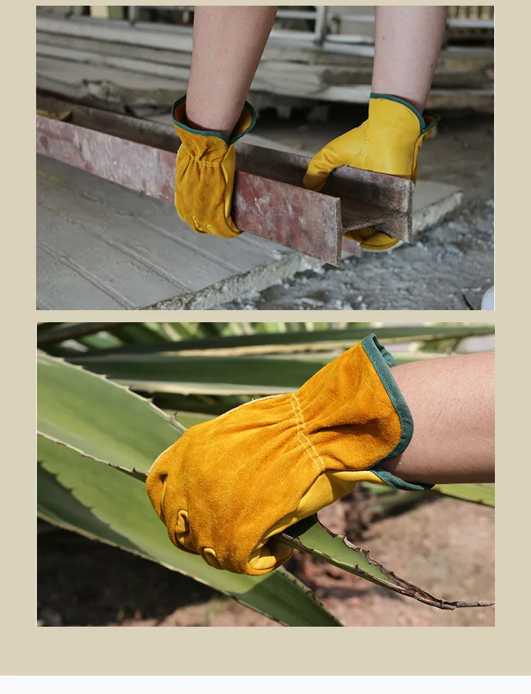 Классификация: рабочие перчатки Тип: полный палец Цвет: желтый Пол: унисекс для взрослых Материал: Воловья кожа, кожа Размер: M, L, XL Характеристики: мягкие, удобные, износостойкие, противоскользящие. Функция: хорошо подходит для обработки материалов, вождения, сварки, технического обслуживания и других промышленных или домашних работ. Применение: наиболее широко используется в качестве рабочих перчаток на складе, в саду, строительстве, сельском хозяйстве, дома, промышленности.