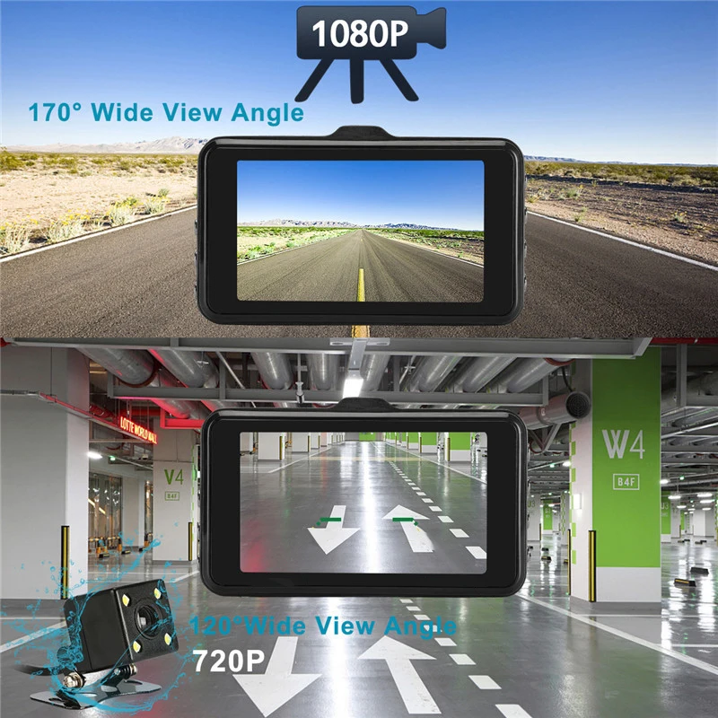 FHD 1080P видеорегистратор 3 дюйма IPS Автомобильный видеорегистратор для вождения ночного видения 24H монитор для парковки g-сенсор циклическая запись двойная камера Dashcam