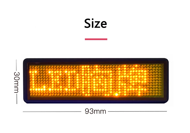 Решетка: 12*48 точек Материал: АБС-пластик, ультразвуковое прессование Вес нетто: 23 г Размер экрана: 93*30*6 мм (длина * ширина * толщина) Размер посылка: 120*90*45 мм (длина * ширина * толщина) Поддержка языков: английский, китайский, традиционный китайский, корейский, японский, русский и т. Д. Функция: отображение до 160 английских символов Регулировка яркости: Настройка в приложении Режим отображения: Мгновенный дисплей, перемещение влево, вправо, вверх, вниз, мерцание Емкость аккумулятора: 250 мАч Время зарядки: 3-5 часов Широкое напряжение: ac110-220 в Время работы: 6-10 часов Эффективное расстояние составляет менее 15 метров Способ установки: магнит + штифт Значок Bluetooth, мобильный телефон + компьютер можно изменить Особенности: -Вы можете сделать DIY программы на мобильный телефон через Bluetooth в любое время. -Модный и привлекательный, лучший выбор для вашей торговой выставки, вечерние, конференции и концерта. -Максимальное сохранение 8 программ, может легко переключаться нажатием кнопки. Покажите разные сообщения в разное время и ситуации. -Вечерние, выставочные, ресторанные, официанты, гидер, модельный автомобиль, модельный автобус, водитель, промоакция, торговый представитель, как светодиодный знак, вы можете использовать его в любом месте. Посылка включает в себя: Светодиодный значок-1 шт. 1 х USB кабель для зарядки 1 x Руководство пользователя Примечания: 1. Измерения выполнены вручную, допускается погрешность в 1-3 мм, спасибо. 2. Из-за разницы между различными мониторами изображение может не отражать фактический цвет изделия. Мы гарантируем, что стиль такой же, как на картинке.