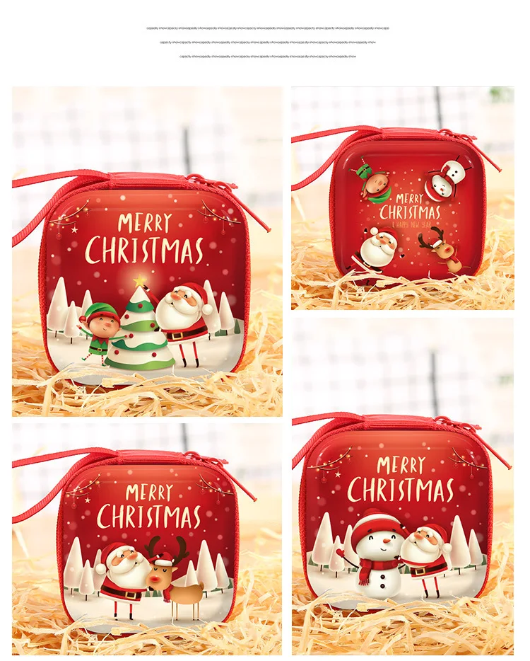 Особенности кошелька -Цвет: как показано на рисунке. -Материал: жести. -Размеры: около 7,5x7,5x3,5 см. -Изготовлен из высококачественного материала, многоразовый и прочный, износостойкий и не деформируемый. -Отлично подходит для маленьких подарков, конфет, сладостей, конфет, лакомств и т. Д. -Он может держать монеты, наушники, кабель для передачи данных и другие ежедневные маленькие вещи, портативные, очень удобные. Эта маленькая коробка поместится в вашу сумку или рюкзак. -Красный дизайн в рождественском стиле, выглядит красиво, создавая праздничную атмосферу.