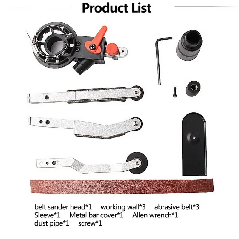 <Простота установки: быстрая и простая установка, другие инструменты для замены не требуются, быстрая преобразование угловой шлифовальной машины в ленточную шлифовальную машину