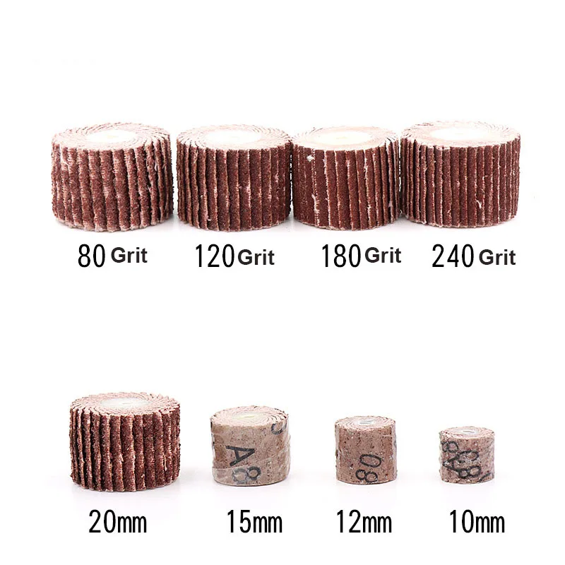 15PCS 10/12/15/20mm Movable Handle Louver Grinding Head Rotary Tool Dremel Accessories 80 120 180 240 320 400 600 Grit