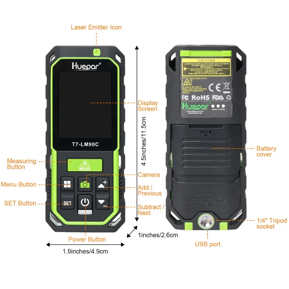 Huepar LM90C Технические характеристики лазерного измерения: