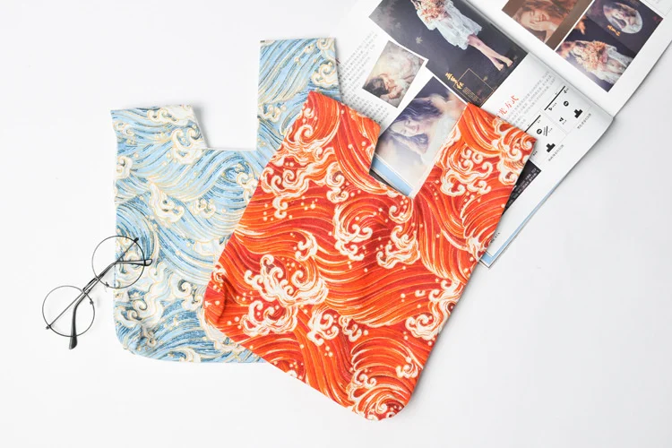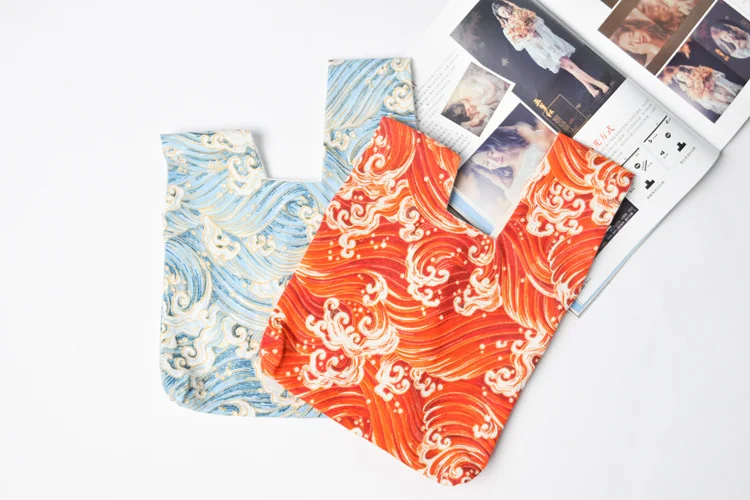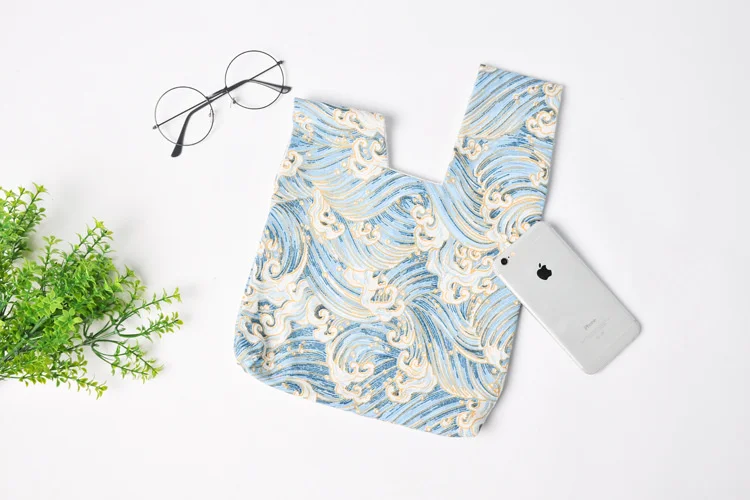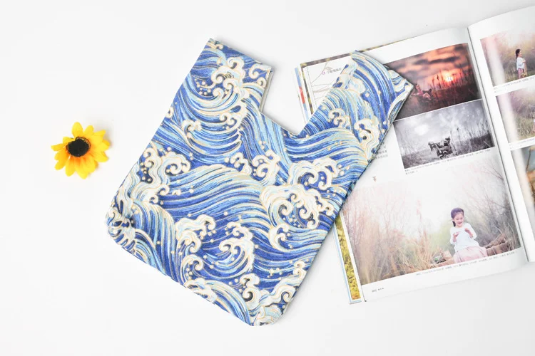 Женская сумка для девочек, Холщовая Сумка на запястье для телефона, Экологически чистая тканевая сумка в японском стиле, Подарочный Кошелек для монет с волнами