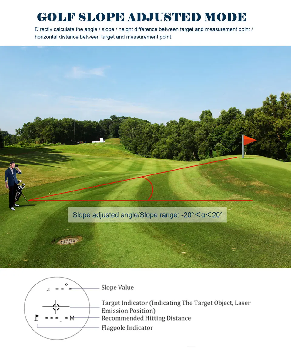 Режим измерения: измерение расстояния, измерение высоты, измерение угла, измерение скорости, измерение сканирования, режим хранения, измерение высоты в двух точках, режим компенсации расстояния гольфа