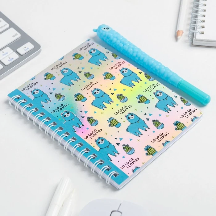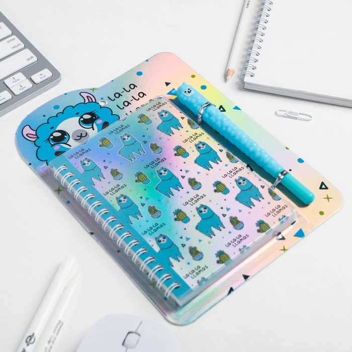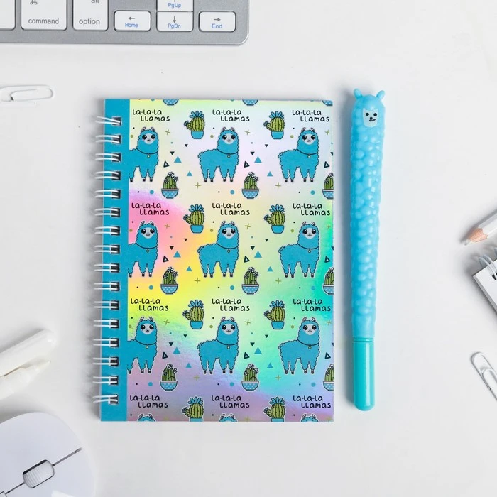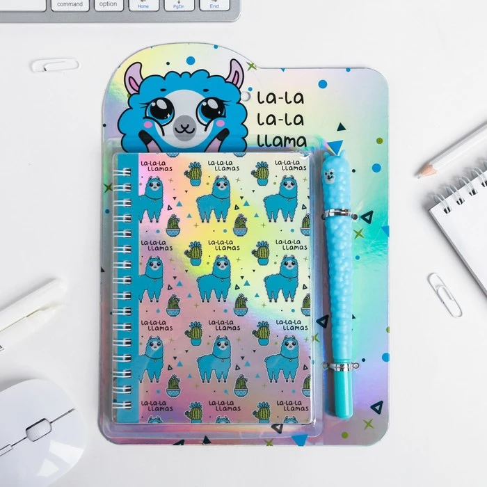 Ежедневник голография и ручка "LA-LA-LLAMA", 40 листов