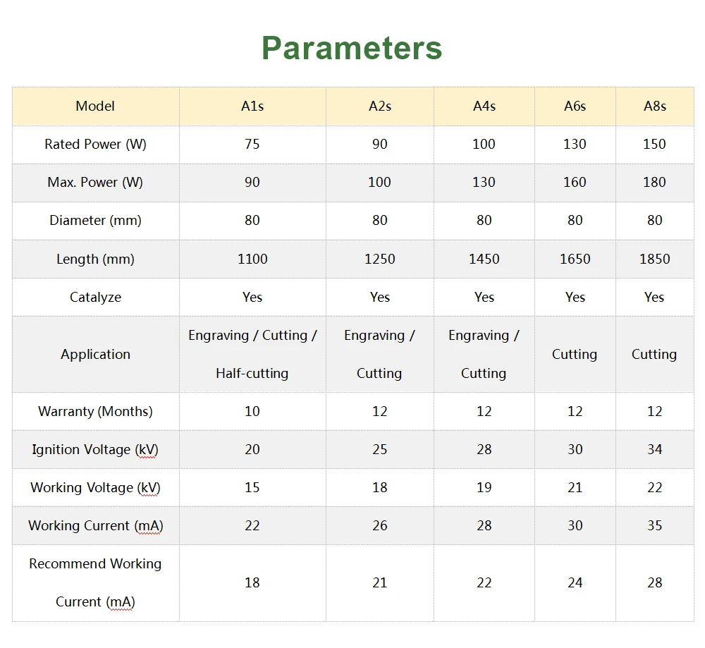 Эта серия продуктов используются физические методы, чтобы эффективно исправить диаметр и качество на выходе Светильник Спот, увеличение мощности, в то время как в решении проблемы Светильник Спот-режим изменения. Объектив intracavity модернизирован и принимает импортные линзы, разработанные в сотрудничестве с американской компанией Ⅱ-American, с хорошим рисунком пятна. Принять Международную новую каталитическую технологию для улучшения твердости пленки и производительности каталитического снижения, стабильной работы в течение длительного времени и более длительного срока службы. A6s и A8s имеют лучший эффект резки для тонких металлических и неметаллических толстых пластин.