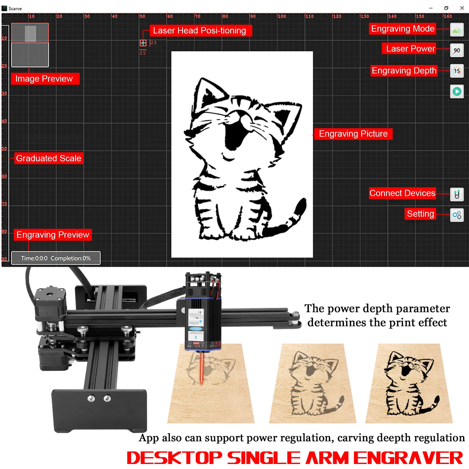 Это своего рода качественный аксессуар для резьбы, подходящий как для одноручного гравера, так и для настольного гравера. Фиксированный фокус 40 Вт, рекомендуемое расстояние между карвингадом и резьбой составляет 15 мм. Максимальная скорость резьбы 235 мм/сек., максимальная скорость резки 1/3 или 1/4 (мягкий материал). Для защиты и продления срока службы мы рекомендуем 5 мин отдыха после 2 часов использования. Вы можете попробовать.