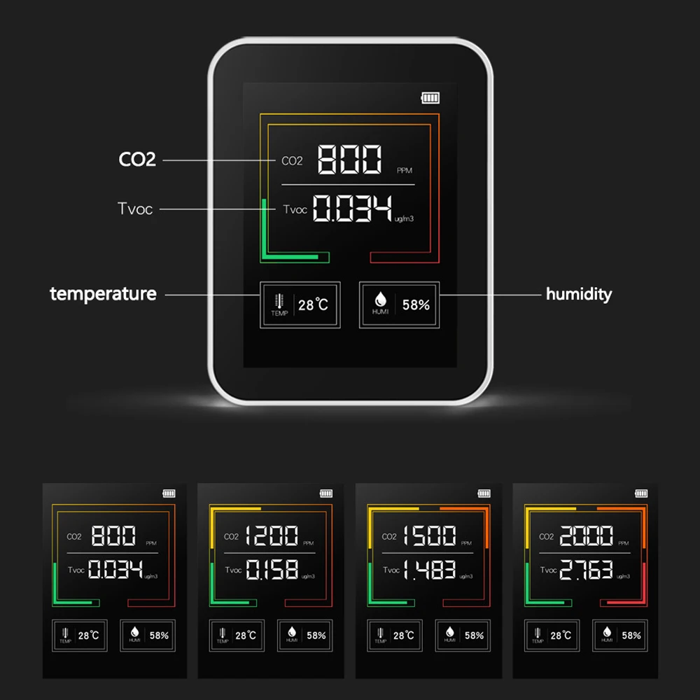 Качество воздуха очень важно для нашего здоровья, поэтому вам нужен детектор качества воздуха для улучшения качества вашей жизни, этот продукт может обнаружить CO2, TVOC, температуру и влажность для вас, приходите и попробуйте. Вы не будете разочарованы этим.